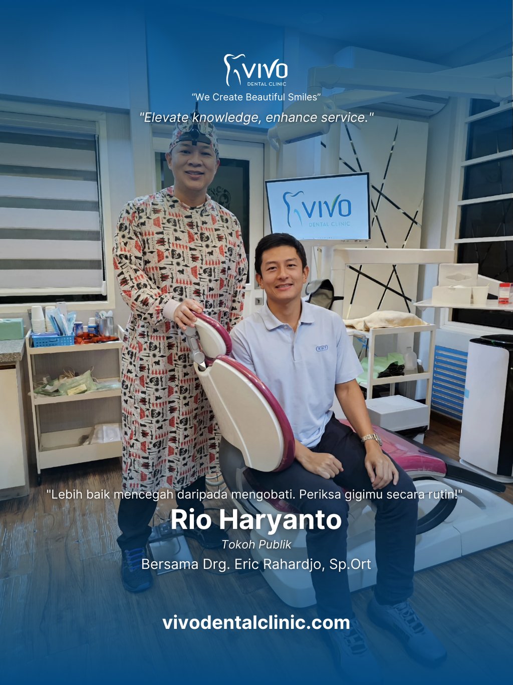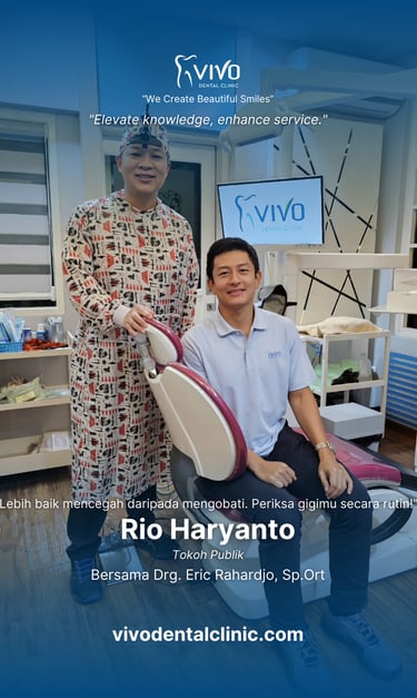 Vivo Dental Clinic adalah sebuah klinik gigi yang berkomitmen untuk menciptakan senyuman indah. Dengan tagline "We Create Beautiful Smiles". kami berdedikasi untuk memberikan pelayanan terbaik kepada pasien dan menyediakan perawatan gigi profesional yang didukung oleh fasilitas yang lengkap.