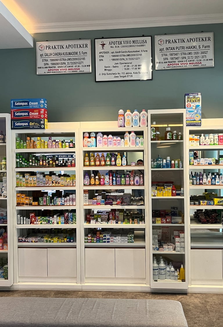 Di Vivo Dental Clinic tersedia Apotik Vivo Mellisa untuk memenuhi kebutuhan obat dan perawatan kesehatan Anda secara praktis dalam satu lokasi.