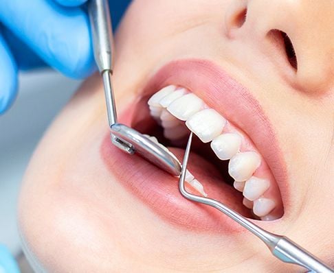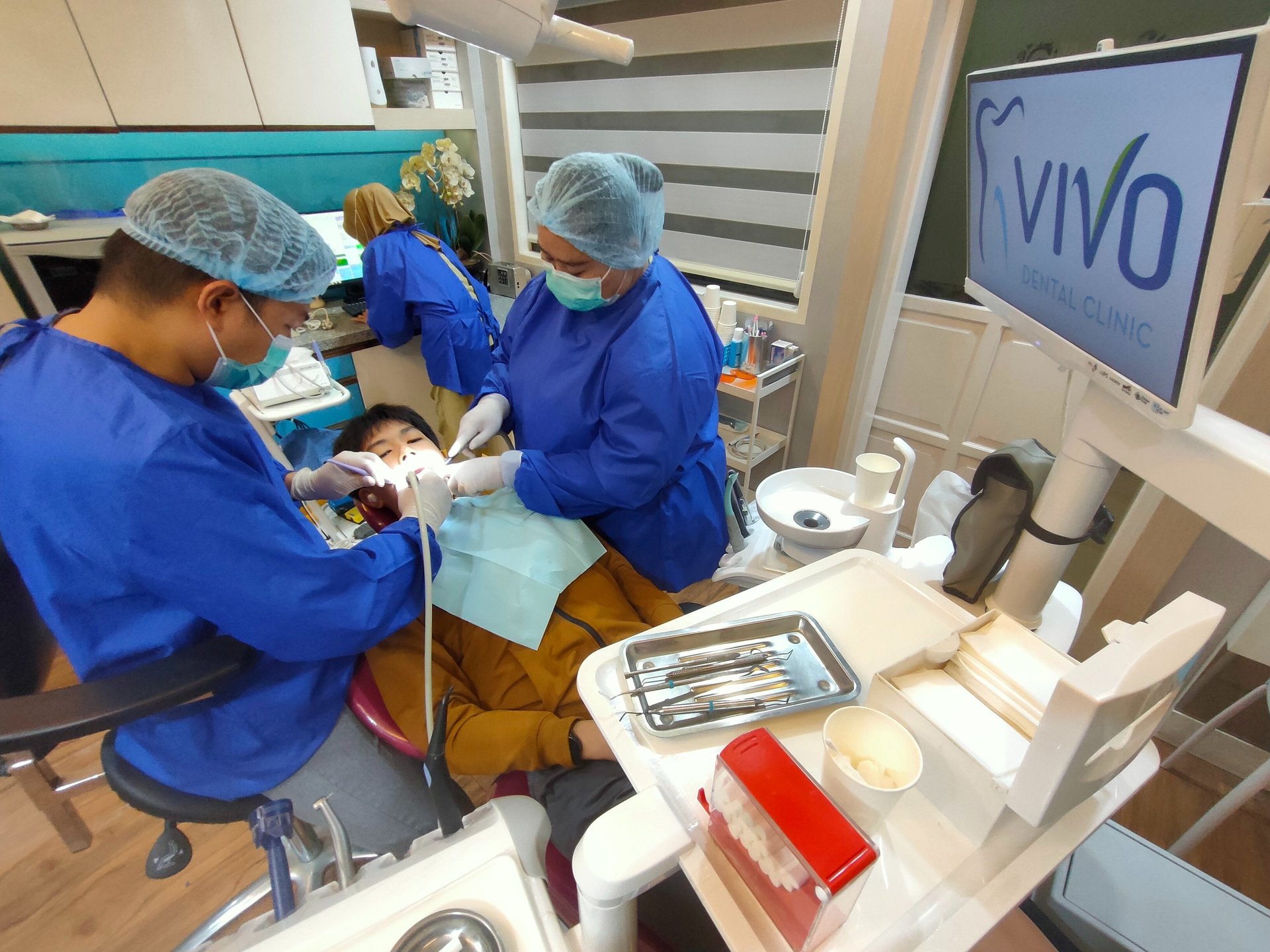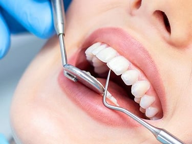 Penambalan menggunakan bahan sewarna gigi untuk memperbaiki gigi berlubang atau retak dengan hasil natural.